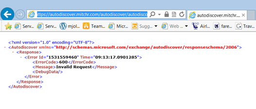 And since I did not show the Autodiscover page in the last post I will show it here. If you go to https://autodiscover.domain.com/autodiscover/autodiscover.xml this is what it should look like.