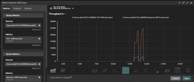 One afternoon a company suffers an outage. This outage was basically caused by network device with HA configured suddenly failing over to a different datacenter. But what caused the network device to fail or lose communication with it’s HA pair? Naturally the investigation begins and we start digging into as many tools to see what we can find. As we are digging in one of the analysts walks in saying he found the problem. Take a look at the first graph.